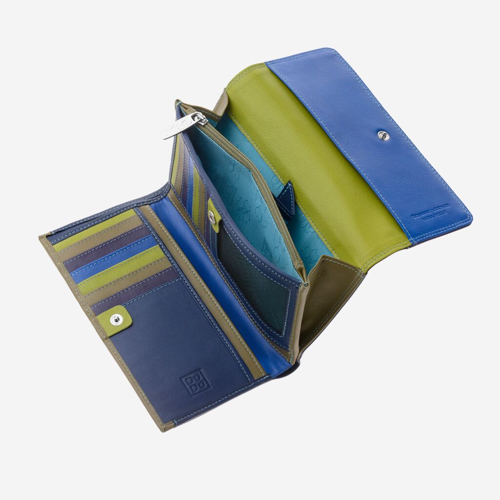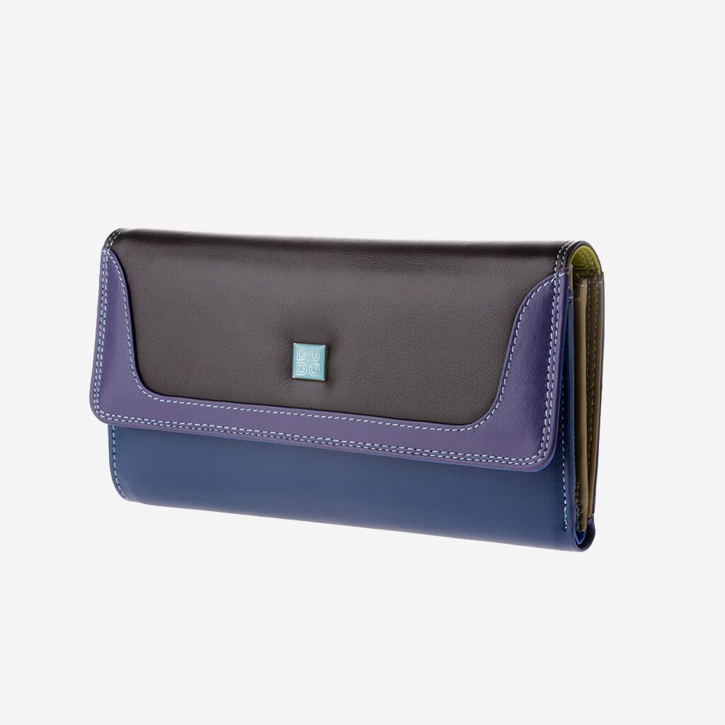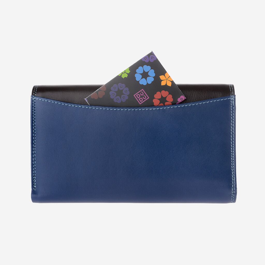 Colorful leather wallet for women made in soft genuine calfskin leather. Many credit card holders and inner pocket with bellows divided in 2 compartments with coin purse zip pocket. External enameled DuDu logo and particular workmanship with rolled edges for unique style.